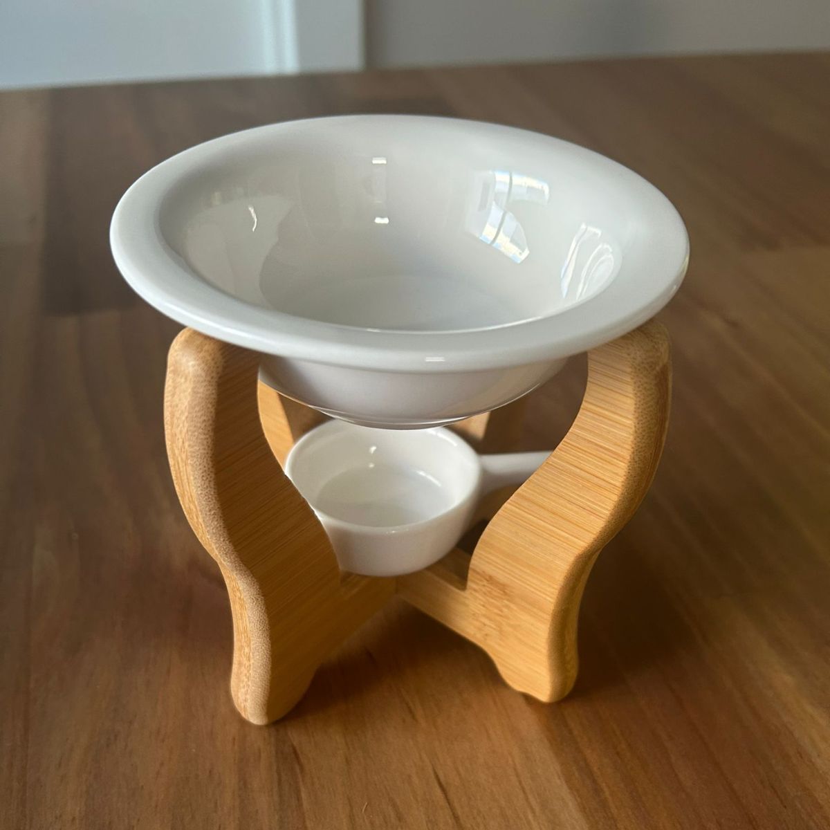 Elaborado con madera de bambú y cerámica blanca, este diseño transmite calma y armonía. Ideal para quienes buscan un toque orgánico y relajante en su hogar.